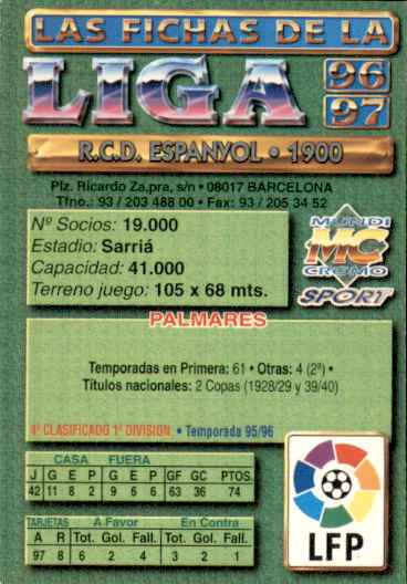 Fichas de la Liga 96-97