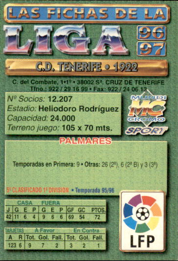 Fichas de la Liga 96-97